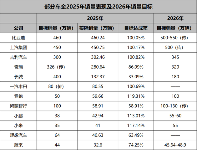 先说“销冠钉子户”比亚迪,460万目标,实际卖了460.2万,达成率100.05%,如果你没感受到亿点点震撼,那我换个说法,每天约有12609人购买了比亚迪,这销售速度简直是贴地飞行,还有很重要的一点是,它可是全球纯电销冠,2025年纯电卖了225.67万辆,直接把特斯拉甩在身后,海外市场更是爆涨145%——泰国、巴西工厂刚投产就成了“印钞机”,就连欧洲市场都开始抢比亚迪的车了。2026年直接喊出500万目标,这哪是“小目标”?这是要把“全球新能源一哥”焊死在自己身上啊。