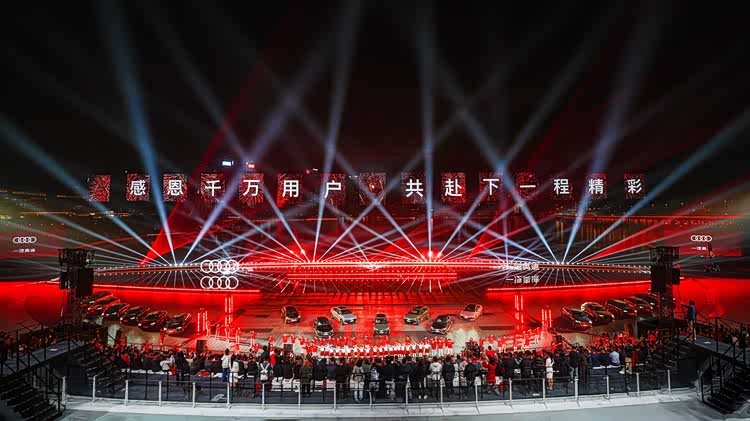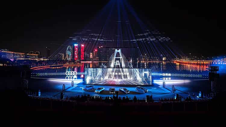 对于当下的很多品牌来说,更多倾向于在一个类似会展中心的场合,巨大的会场塞下上千名媒体、达人、网络红人以及经销商、供应商。以此来增强声量,提升“人效比”。而在一汽奥迪的这场庆典上,把大片留白,留给了背后珠江口的自然景观。数百人的观众席上,则被精心安置了软坐垫确保舒适——甚至贴心安排了羊毛披肩,以应对夜晚微凉的海风。