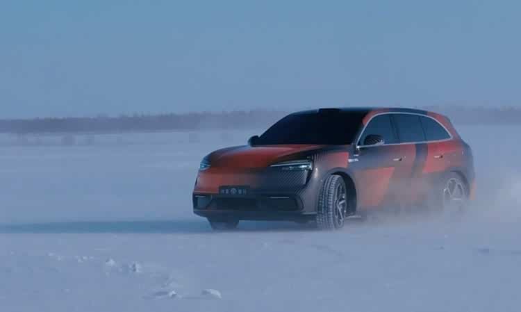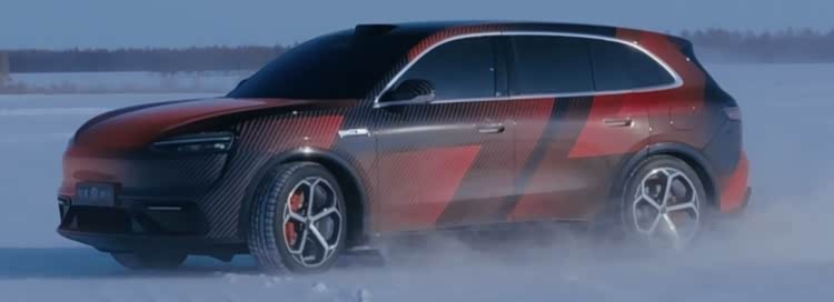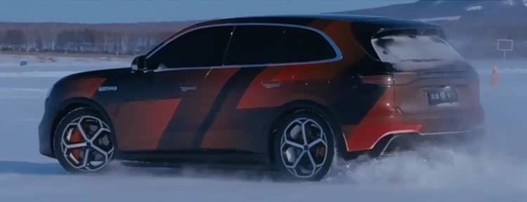 车身侧面,该车有明显有着更加小尺寸的线条,应该是一款5座车型,定位低于M7,也可以看作是前者的运动版,略带下坠的车顶,倾斜角度较大的D柱,圆润的造型,半隐藏式车门把手,大尺寸轮毂等元素都不会缺席,红色刹车卡钳也突出了运动的定位,车顶激光雷达A柱下方的传感器当然是华系车型的象征,辅助驾驶方面也有着不错的表现。另外,实车可能是具备空气悬挂,离地间隙相当的低趴,再度的增强了运动的感觉。