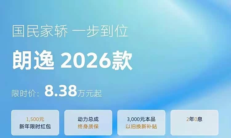 2026款 大众朗逸(参数|询价)已于1月20日上市,共推出了7款车型,指导价格为12.09万-14.39万元,目前有网友拍到了2026款朗逸自动得逸版实车,作为入门版本,该车搭载1.5L发动机,限时8.38万元(详情请咨询当地经销商),下面红涛就来介绍一下它,看看是不是你想要的那台座驾呢。