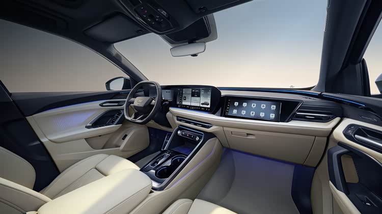 全新奥迪Q5L的内饰采用了奥迪最新家族式设计,配备由11.9英寸仪表+14.5英寸OLED中控屏组成的双连屏,副驾区域还提供10.9英寸嵌入式娱乐屏,搭配可选装的13.1英寸W-HUD,组成四屏系统,科技感直接拉满。车内方向盘为三辐式平底样式,换挡机构采用滑块式电子换挡,更显简洁清爽。