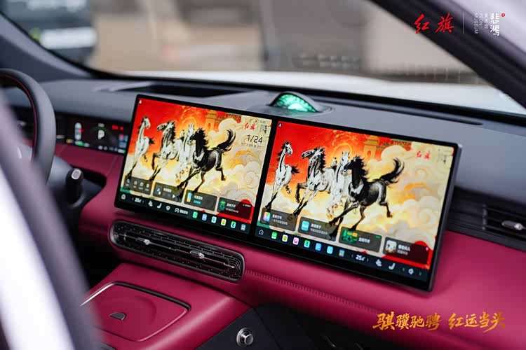 双方推出了马年专属车衣、香片、雨伞这些文创小物件,还有车机壁纸,车衣设计直接取材于《奔马》《双骏图》这些经典画作,贴在 红旗HS6 PHEV(参数|询价)上,东方美学拉满,既讨了马年奋进的好彩头,也让开车这件事多了几分艺术感,挺戳人的。