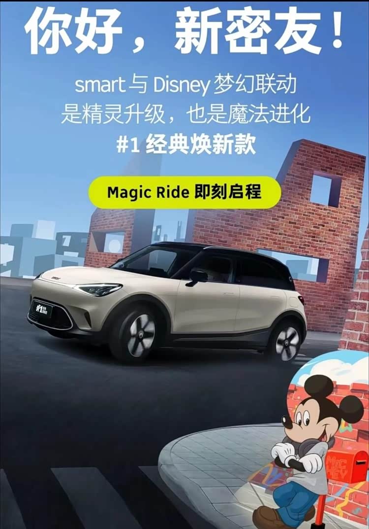 要说把卡通艺术联名玩到人心坎里的,必须提smart和迪士尼的跨界合作!2025年下半年,smart携手迪士尼推出了两款米奇限定艺术车,分别叫“灵感密友号”和“灵感梦幻号”,基于smart #1经典焕新款打造,一亮相就成了年轻人打卡的热门对象。这已经不是俩品牌第一次牵手了,11年前就出过合作款,这次算是升级版的“双向奔赴”,把童趣和艺术感拉满了