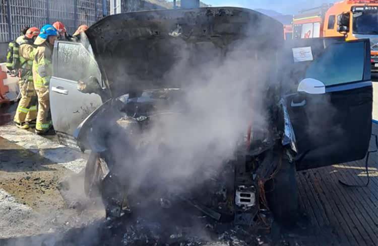 当地媒体消息显示,驾驶员在火势蔓延前成功撤离,但消防人员未能及时控制火情,车辆前部最终被完全烧毁,仅剩焦黑扭曲的残骸。初步迹象表明,起火点大概率位于发动机舱内部或周边区域。火焰迅速蔓延至整辆车的前部,原本的车头结构被完全吞噬,最终只剩熔化变形的金属残骸。