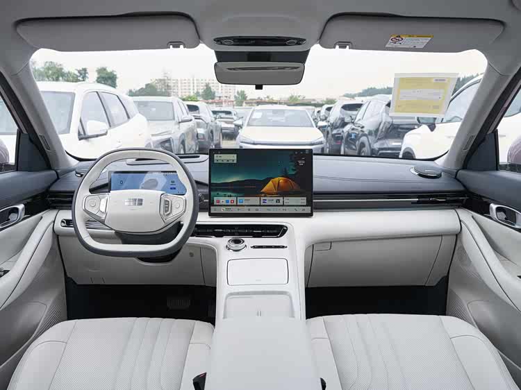 银河E5的屏幕尺寸更抢眼,10.2英寸液晶仪表加15.4英寸悬浮中控屏,视觉效果更棒。它搭载Flyme Auto系统和吉利自研的龍鹰一号芯片,支持双音区语音、Flyme link手机互联和OTA升级,还加了导航绿波出行、洗车模式这两个实用功能。绿波出行能根据红绿灯节奏推荐车速,通勤时少等不少红灯;洗车模式一开启,自动关窗折后视镜,再也不怕洗车时误触操作了。