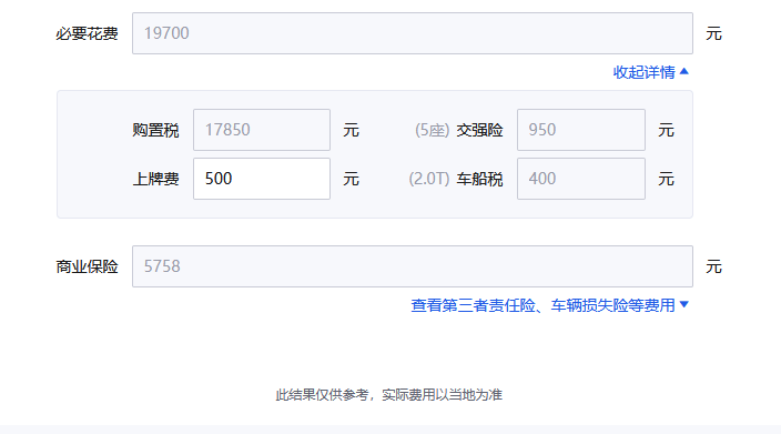 除此之外,保险费用也是个不容忽视的存在。凯迪拉克CT4的保险费用包含商业险、交强险和车船税三部分,其中首年交强险和车船税的费用分别为950元和400元,商业险按第三者责任险为100万赔付额度来看,首年商业险费用为5758元,总计费用约为7108元。如果后续不出险的话,第二年会打9折,第三年为8折,费用会更低一些,具体以实际为准。
