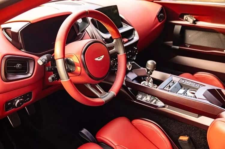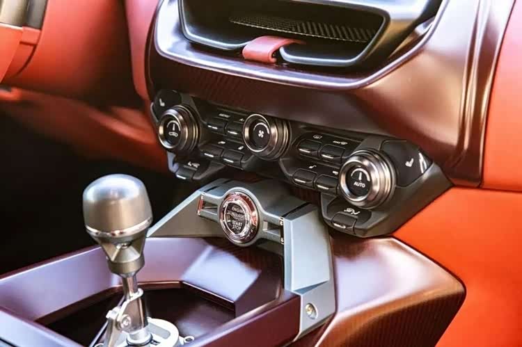 车内是硬核与豪华的完美平衡。大臣红真皮搭配黑色Alcantara,带加热通风的碳纤维运动座椅;方向盘用大臣红真皮配拉丝铝,轻量化钛合金换挡杆,外露换挡连杆强化机械感。防滚架喷成炮铜色,配红碳铭牌与FIA安全带接口,轻量化地毯与精简隔音,让驾驶者能清晰捕捉V12引擎的每一次轰鸣,感受最直接的机械反馈。