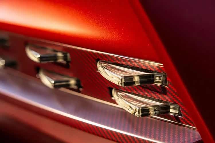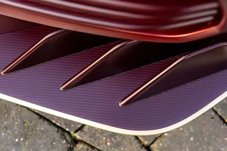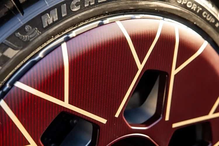 而它的稀缺性,是升值的核心底气——全球仅38台配额,且需厂方许可才能购买,上市前就已售罄。这台深红色金属漆款,是Q定制专属配色,红碳套件加持,视觉辨识度拉满。