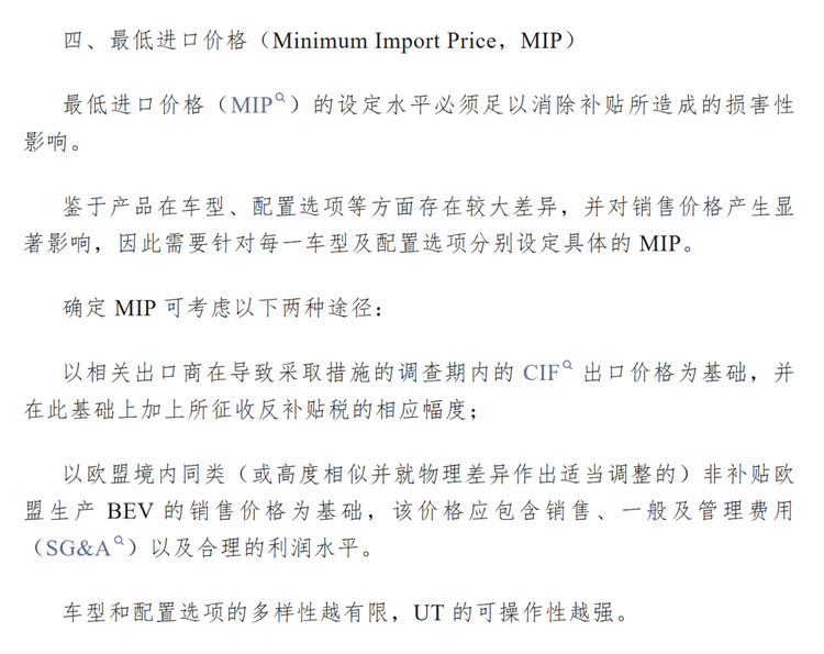 简单来说,中国车企出口到欧盟的电动车,只需要设定欧盟认可的最低限价(高价卖车),就不用再缴纳2024年10月开始征收的反补贴关税。