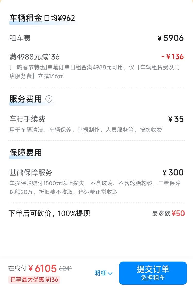 需要指出的是,无论是自营平台还是第三方,除了租车费用之外,明细中还会提供基础保障服务费、保险费、手续费等其他费用,但“基础服务费”不等同于“全险”,它大概率只涵盖了部分基本的保障范围,而且还有相关的押金、信息认证等细节,电车通建议用户在提交订单前,务必点开费用明细,逐项确认,以保障自身的权益。