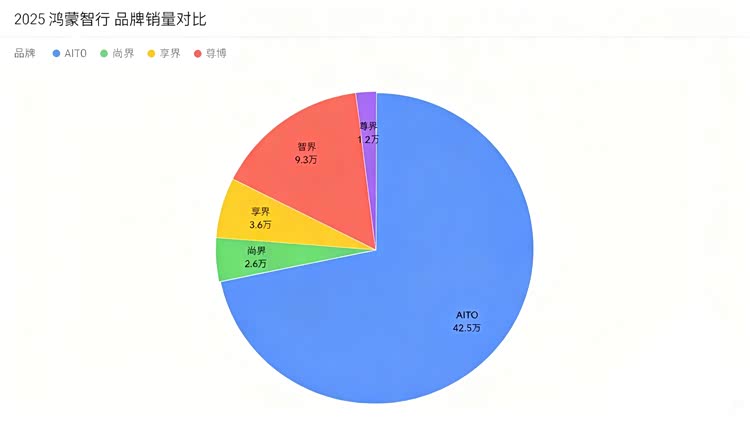 享界、尚界、尊界三大品牌虽目前销量规模不及问界与智界,但各自凭借清晰的市场定位,在细分市场站稳脚跟,成为鸿蒙智行产品矩阵中不可或缺的组成部分,也让鸿蒙智行的市场覆盖维度更加全面。享界主打30万级行政豪华轿车市场,2025年全年销量3.7万辆,旗下S9、S9T两款车型形成产品合力,其中S9T上市后彻底激活品牌势能,连续三个月蝉联中国新能源30万以上中大型车销冠,后四个月月均销量提升至7000台以上,凭借“移动会客厅”的产品理念,成功切入行政豪华轿车的细分赛道;尚界则聚焦主流下沉市场,走普惠化的产品路线,2025年全年销量3万辆,以H5为核心车型,15.98万的起售价大幅降低了鸿蒙智行的用户入门门槛,不仅创下新能源品牌最快交付破万的纪录,更让鸿蒙智行的产品触达更多普通消费群体,为品牌积累了海量的用户基础与人气;尊界是鸿蒙智行布局超豪华市场的标杆品牌,2025年全年销量1.1万辆,虽从数字上看远不及其他品牌,但这份成绩在70万级以上的超豪华市场中堪称惊艳。其首款车型S800起售价70.8万,上市4个月大定突破1.8万台,月均交付稳定在2000台以上,专为高净值人群打造的豪华行政场景体验,打破了“高端国产无人问津”的市场偏见,成为鸿蒙智行展现顶级研发与制造实力的品牌担当。