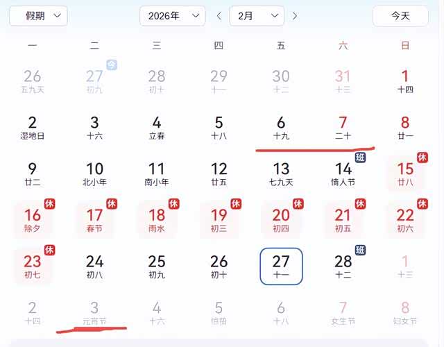 有人老是纳闷,为啥很多车都要等到三月?来给你一张日历截图你就懂了。可以说,从2月6号左右,很多公司很多厂都要放假了,今年工作日也就剩下十几天了,对于很多务工人员的确如此,归心似箭,这个时候至少这一部分人是没空关注啥了,而对于经销商,也将面临一年来最冷场的日子。