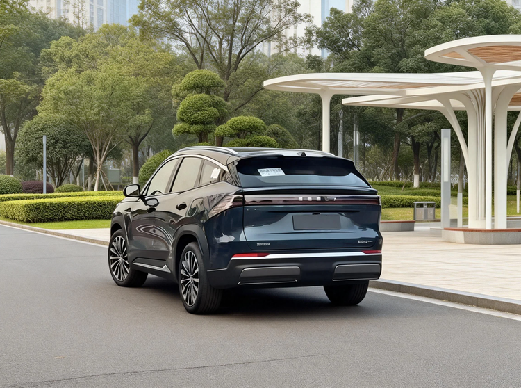 第一眼看到实车图,大家有没有觉得很眼熟?没错,它很有银河M9的影子。相比于现在很多车那种棱角分明的“直男审美”,M7走的是圆润饱满的路线。尤其是那个封闭式前脸和贯穿式灯带,视觉上把车头拉得很宽。