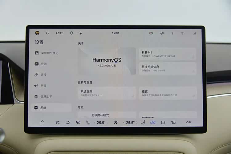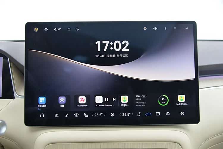 这辆车的内饰是典型的鸿蒙座舱,和华为其他车型差不多。