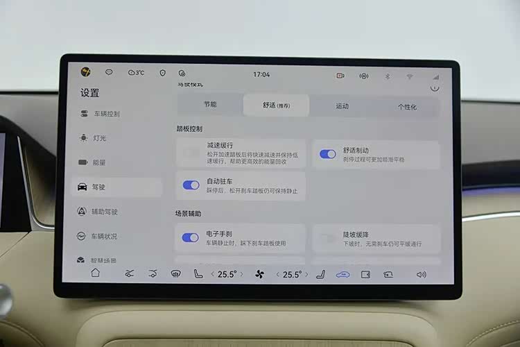 全系都是皮质包裹座椅,全系标配前排座椅加热和通风,座椅比较柔软,舒适性不错,但包裹性不强。