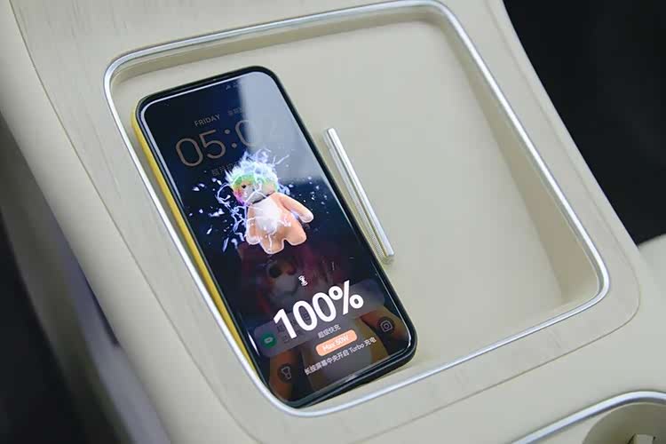 屏幕下方有两个放手机的位置,但只有一个带50W无线快充。