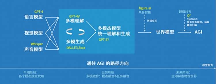 在阶跃星辰的AGI路线图是:单模态—多模态—多模理解和生成的统一—世界模型—AGI(通用人工智能)。
