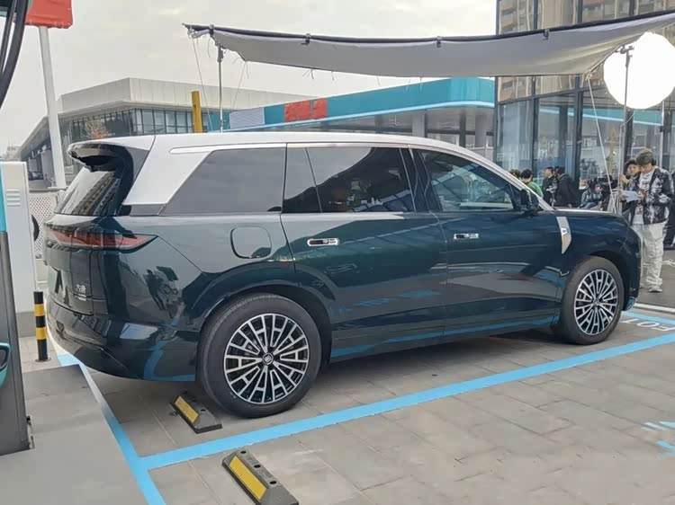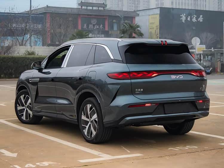 来到侧面,这款大唐的侧面造型和比亚迪高端品牌腾势的N9/N8L很是相似,主打的也是一个方正大气敦实,无愧于旗舰级SUV的定位。与此同时,车顶也采用了双色车身,配合上隐藏式的门把手和大尺寸的轮圈,整个气场和体量感我觉得是一点儿也不输自家腾势N9的。