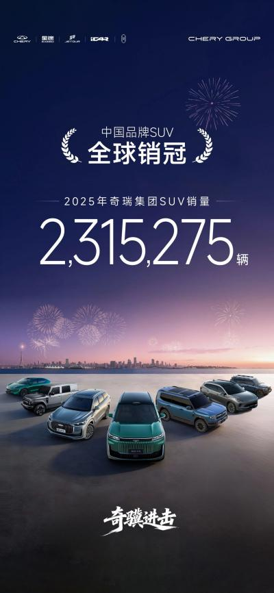 2025年汽车市场竞争格局持续重构,SUV细分赛道成为自主品牌全球化突破的核心阵地。其中,奇瑞依托全链条布局实现销量突破,全年SUV全球销量超231万辆,拿下中国品牌SUV全球销量第一。这一表现打破了海外对中国SUV的固有印象,彰显出自主车企在技术、全球布局及产品打造上的扎实功底。