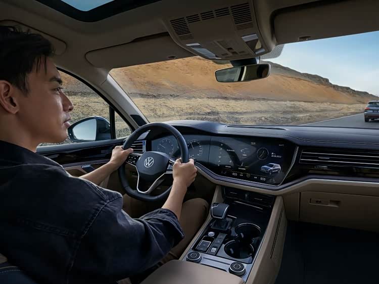 大众途锐同样搭载2.0T与3.0T涡轮增压发动机,3.0T V6发动机最大功率250kW,峰值扭矩450N·m,同样匹配8速手自一体变速箱,搭配4MOTION全时四驱系统与托森式差速器,官方零百加速5.9秒。其动力调校偏向线性平顺,起步沉稳,深踩油门后动力持续爆发,同时空气悬挂与后轮主动转向系统的配备,让其既能应对城市通勤,也能胜任轻度越野路况。