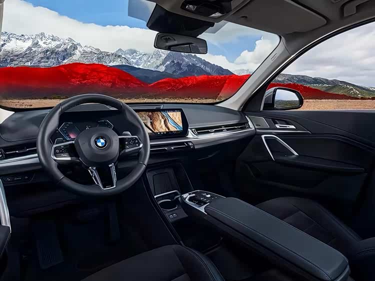 内饰方面,2026款宝马X1延续了现款车型的设计布局。车内最显眼的是10.25英寸全液晶仪表和10.7英寸中控屏组成的双联屏。新车保留M运动型多功能真皮方向盘、前排运动型座椅等配置。