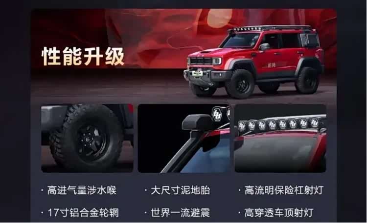此次三车齐发升级思路务实,上市即交付缩短等待周期。新车定位“出厂即改装”越野车型,目标用户为兼顾城市通勤与越野、不愿后期折腾的消费者,凭借“省心越野”属性,有望在硬派越野市场脱颖而出,市场表现值得期待。