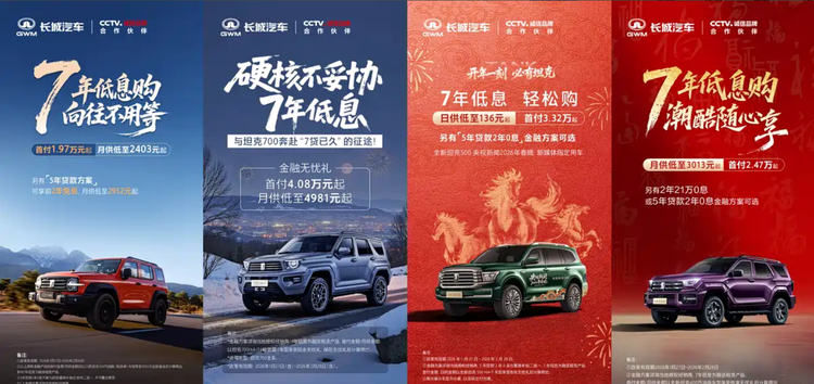 1月27日,我们从坦克品牌官方了解到,从即日起至2月28日针对2025款 坦克300(参数|询价)(挑战者)、坦克400汽油版、坦克500 Hi4-T以及坦克700全系推出7年低息金融方案。这种做法本质上是在降低“入手门槛”和“长期使用成本”,通过拉长金融周期、降低前期支出,让用户在预算可控的前提下,选择更高级别或更高配置车型,对有长期用车规划的消费者更具现实意义。