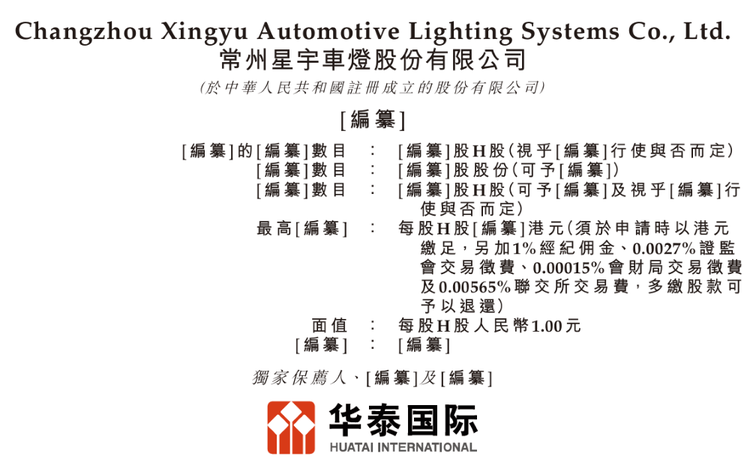 车东西1月27日消息,日前,常州星宇车灯股份有限公司(以下简称星宇股份)向港交所递交上市申请,华泰国际为独家保荐人。