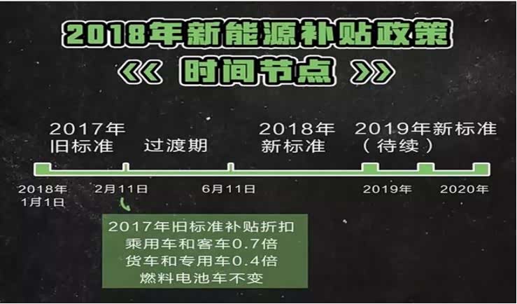 2018年补贴标准分为三个阶段即:1月1日—2月11日为第一阶段,补贴按照17年的执行,2月12日—6月11日为过渡期,6月12日—12月31日按照18年的新政策执行。