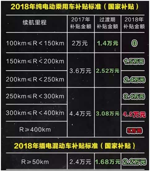 1.新能源客车:根据规定,2018年2月12日—2018年6月11日为过渡期,在此期间上牌的车辆补贴按照2017年的0.7倍执行,6月11号以后所购买的车辆按最新标准执行,单车最高国补为18万元。