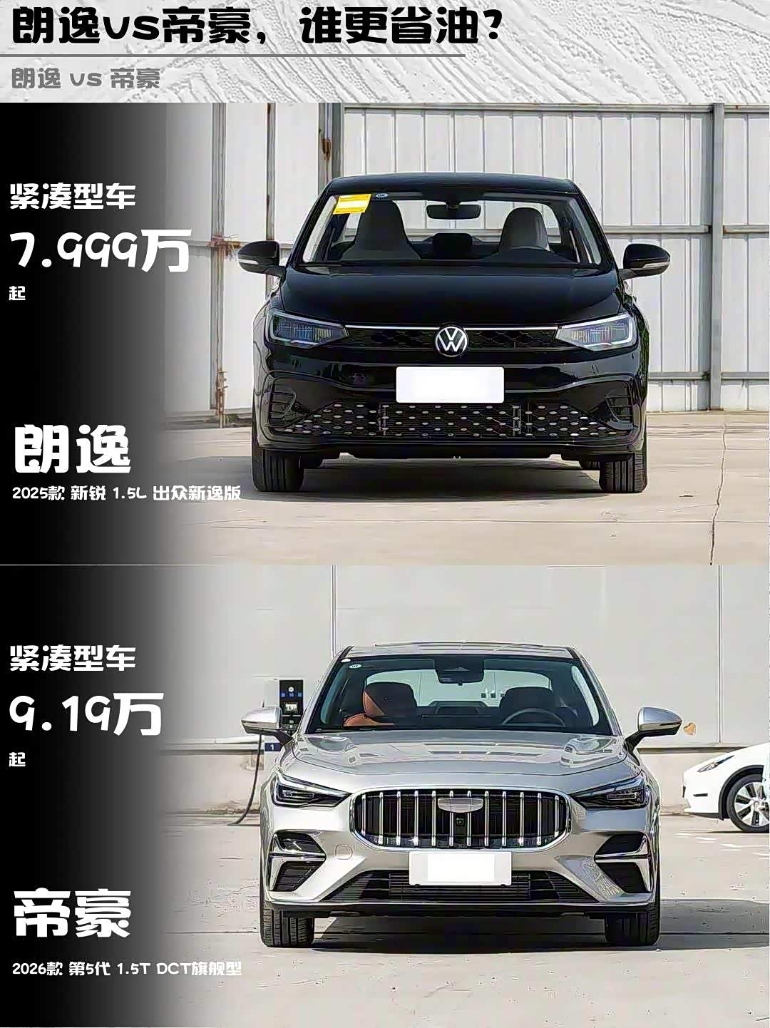 车家号·0浏览·2026-01-28 08:22 · 北京最近想买10万级家轿的朋友看过来!🔥 今天深度对比两款热门选手——2025款 朗逸(参数|询价)新锐1.5L出众新逸版(7.99万)和2026款帝豪第5代1.5T旗舰型(9.19万),实测干货直接上!👇