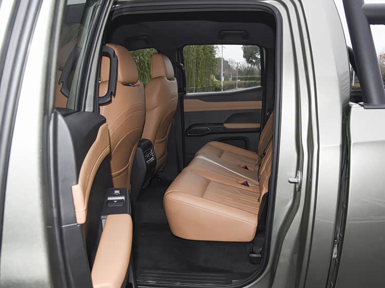 尾部造型方面,货箱内部集成有龙门架,熏黑的尾灯组采用了垂直布局,内部结构有着比较强的立体感;下包围部分同样配备有黑色保险杠以及银灰色防擦板,同时兼顾了登车梯的作用。