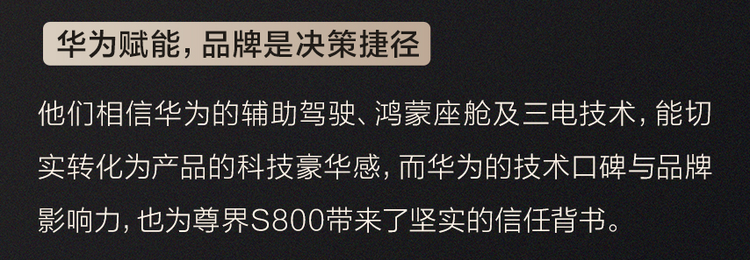 陈先生表达更直接,“如果没有华为的技术,我不会考虑这台车。华为赋能的信任感是我选择尊界的根本原因。”