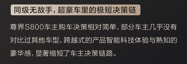 尊界S800在市场中的竞争力并非单纯依赖豪华感,而是更倾向于在智能化体验上的突破,二者兼容的双重满足极大地缩短了高净值用户的购车决策链。许多车主表示,他们在了解尊界S800后,几乎没有做过其他车型的对比,直接决定购买。