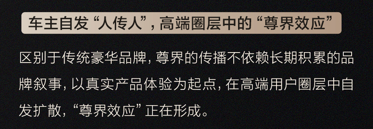 尊界S800的成功也离不开车主之间的口碑传播,特别是在高端车圈层内的“尊界效应”。许多车主表示,他们在朋友之间主动推荐尊界S800,这种“人传人”的推荐方式已在高端车主群体中形成自发裂变。