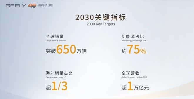 吉利这个战略背后反映的是什么呢,吉利控股集团发布2030战略,剑指650万辆,以前都是说“中国市场”,现在吉利用“全球顶级架构”、“海外销量占比”这些词,明显是要在国际舞台上竞争。