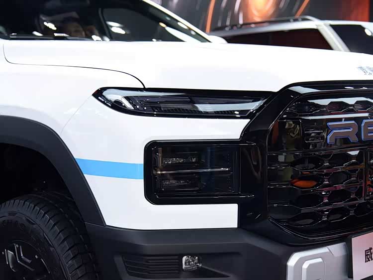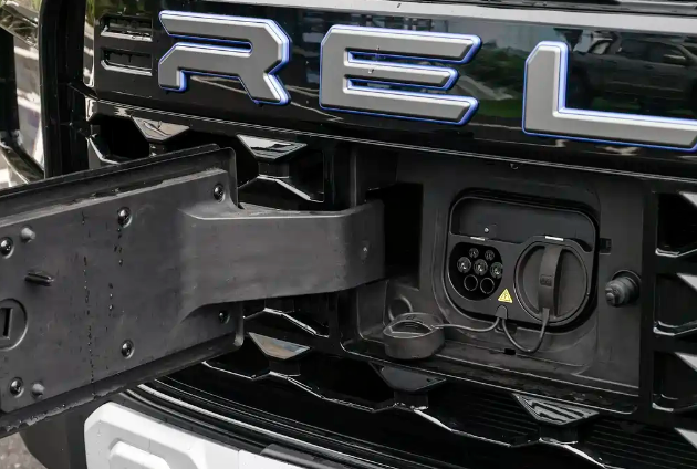 在外观设计上,威麟R08 EV整体视觉语言硬朗且富有极高的辨识度,前脸配备大尺寸多边形进气格栅,内部以蜂窝状亮黑色饰件填充,中央镶嵌着醒目的RELY品牌标识,前舱盖上方则镌刻有“威麟”字样,彰显其品牌身份。