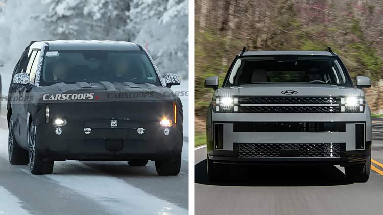 近日,现代胜达中期改款车型测试谍照曝光,新车有望于明年正式亮相,采用全新前脸与升级后尾部设计,或将新增增程式动力版本。