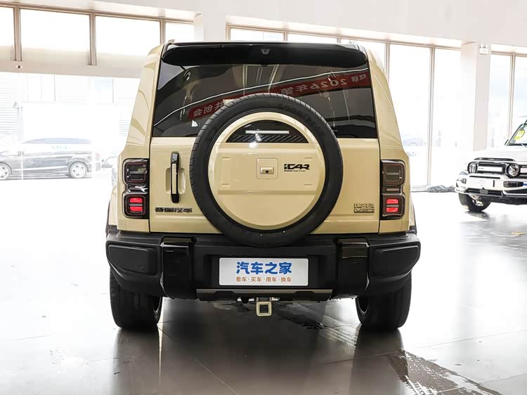 车尾部分,iCAR V27也保留了很多经典设计,侧开式尾门和外挂式全尺寸备胎没有缺席,车顶还配备了大尺寸扰流板和高位刹车灯,尾灯组为垂直布局,内部灯源点亮后也带来不错的视觉效果。此外,新车还配备了宽大的后包围,且预留了拖车钩安装位置。