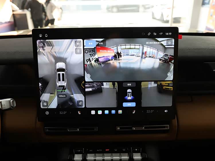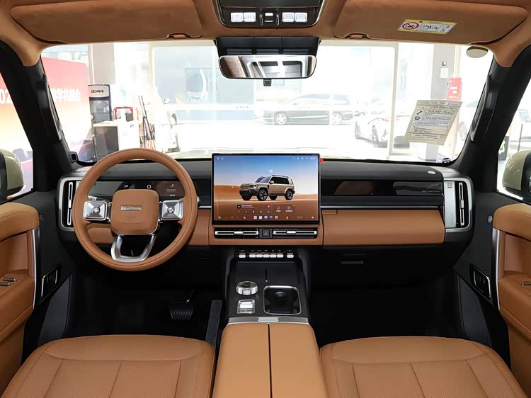 车内部分,iCAR V27沿用了家族式设计,整个中控布局比较规整,提供有三幅式多功能方向盘、悬浮式中控屏以及电子怀挡,操作台部分还保留了部分实体按键,中央通道区域也配备了无线充电面板、驾驶模式切换按钮、杯架等实用性配置,营造出不错的科技感和越野氛围。