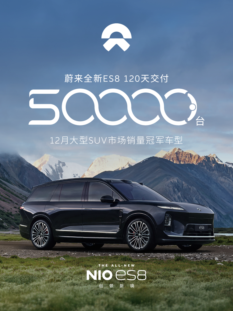 而蔚来ES8则是目前40万元以上最有竞争力的中国品牌车型。1月19日,蔚来官方账号发布消息,在正式开启交付后的第120天,全新ES8已成功交付突破50000台。