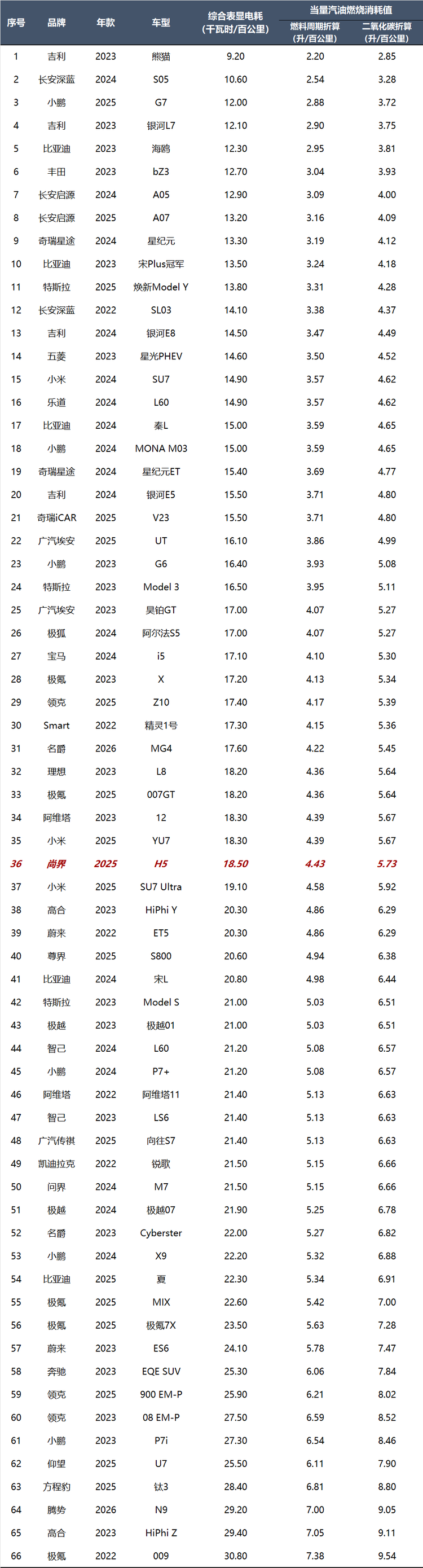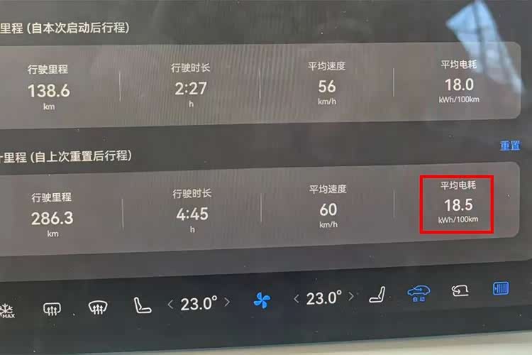 根据表显近百公里的平均电耗18.5千瓦时,由国标计算公式可以得出,按照燃料生命周期计算,当量汽油百公里消耗为4.43升;如果按照二氧化碳排放量计算,当量汽油百公里消耗为5.73升。