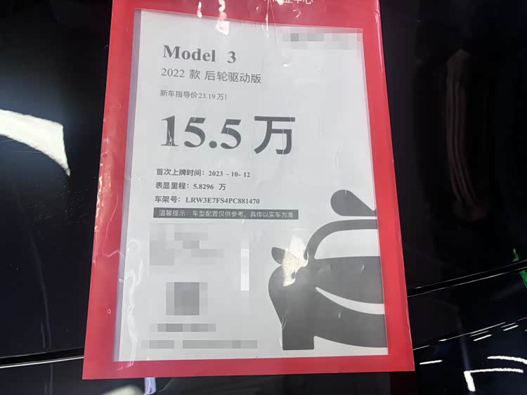 很多人说特斯拉保值,我们就来看看。比如 2022 款 Model 3 后轮驱动版,新车指导价 23.19 万,2023 年 10 月上牌、行驶 5.8 万公里,如今二手落地价约 15.5 万,2 年零 3 个月折损 7.69 万,每万公里折损约 1.33 万元。这台两年出头的车保值率是66.8%。