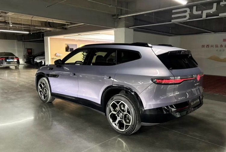 与众08的车尾比较敦实,乍一看跟小鹏G9还有点相似,贯穿式灯组、后扰流板、黑色外覆件加持的后包围等等。不同的是,与众08用了“筋肉感”明显的线条来修饰侧身,使其看起来并不臃肿。另外,与众08的轮圈样式、隐藏式门把手等设计元素,也增强了整车的看点,且据我们所知,新车还用了无框式车门来强化吸睛指数。