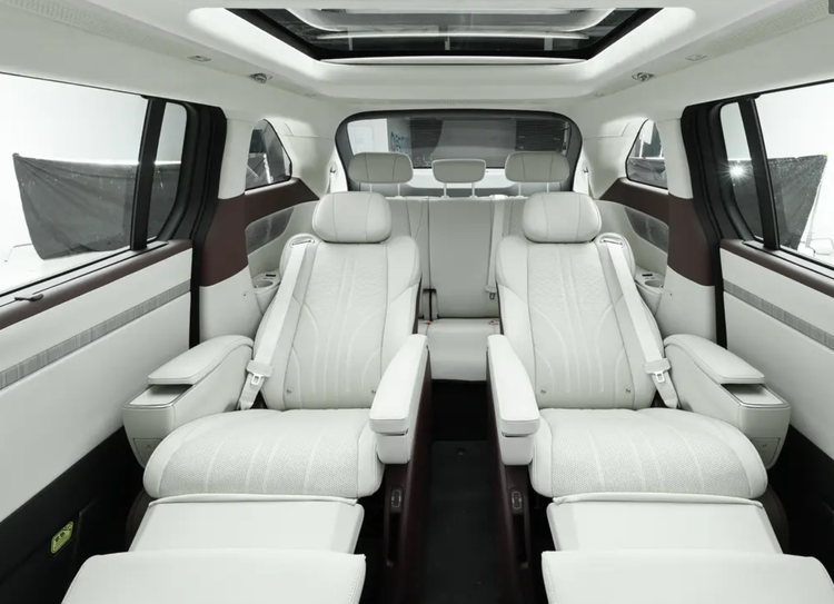 小鹏X9的舒适度高于丰田埃尔法和别克GL8,或许外部来看小鹏X9会比极氪009、梦想家小一号,但实际空间非常大,毕竟它的车长来到5293毫米,轴距来到3160毫米,只是外部设计给你产生了错觉。第二排座椅支持前后电动调节,中间的过道非常宽敞,座椅设计很大,双扶手也很宽敞,堪比航空头等舱。像座椅按摩加热通风都有,把控腿托都很长,完全可以做到躺平那种坐姿,前排带有小桌板、车载冰箱,车顶有15.6英寸娱乐屏,车门扶手带有手动遮阳帘,按键式的开门方式,可以说小鹏X9带给你的不是体验,而且更高级的情绪价值。