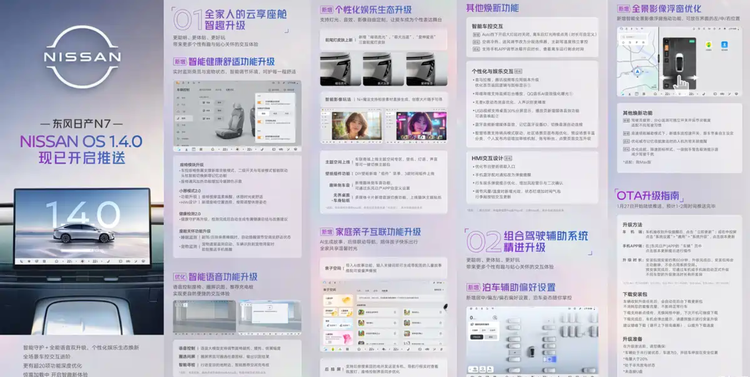 1月28日,东风日产官方宣布,旗下 日产N7(参数|询价)车型开启新一轮OTA升级,软件版本为NISSAN OS 1.4.0。本次升级重点聚焦座舱舒适性和智能功能优化,针对车内使用体验进行了多项调整和拓展,为用户提供更便捷和个性化的驾驶及乘坐环境。