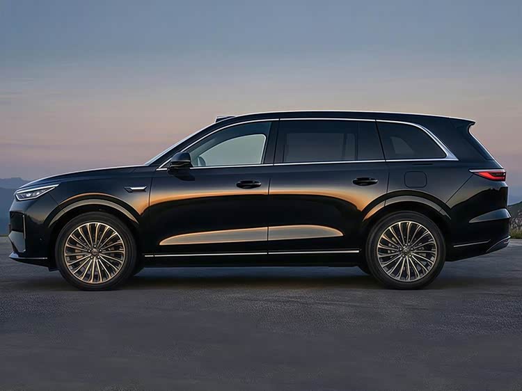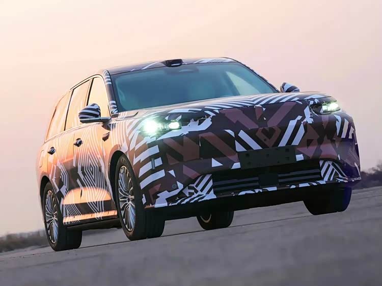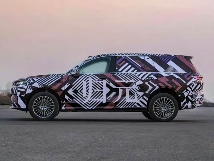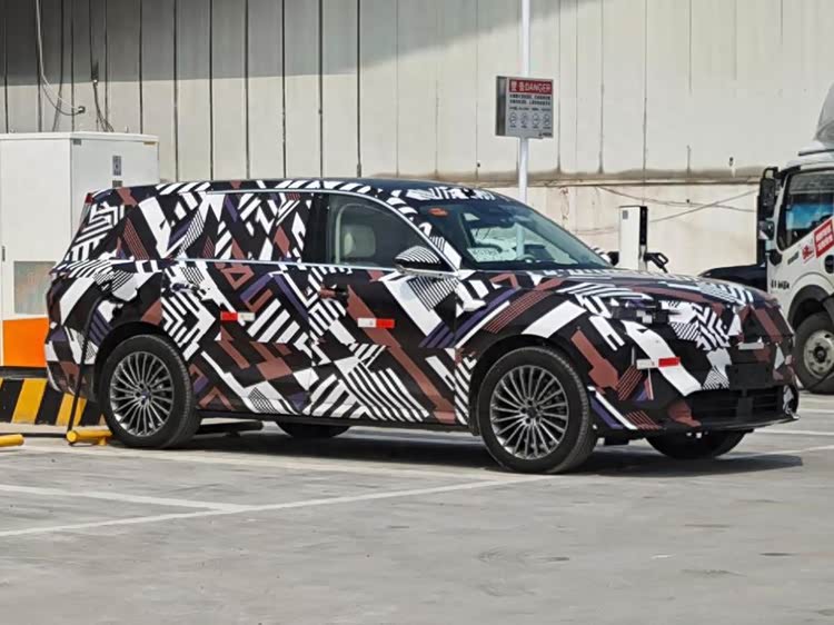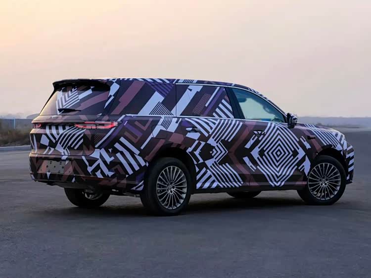 侧面配有传统物理门把手,车长预计达到5.3米,轴距超过5.1米,典型的大型SUV身材,也完全具备对标最新款理想L9和蔚来ES8等车型的实力。