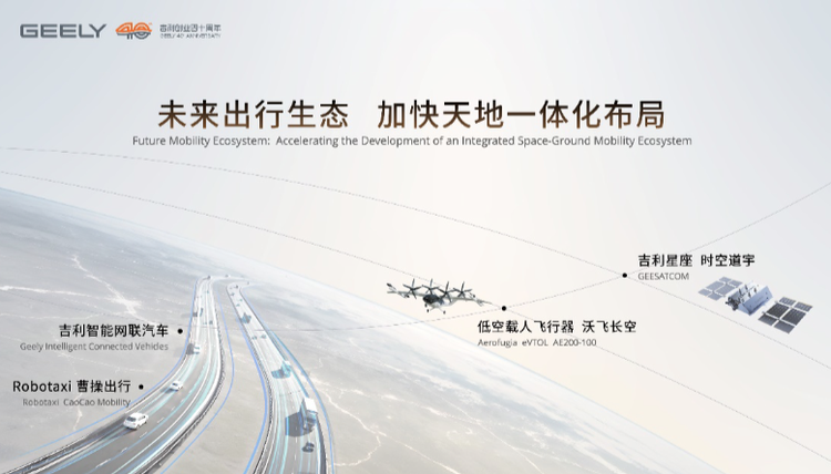 在生态化层面,吉利早已跳出了“造车”的单一维度。它正在构建一个由吉利汽车、千里科技(智驾)、时空道宇(卫星)、沃飞长空(eVTOL)、曹操出行(共享出行)共同组成的“天地一体化”未来立体出行生态。