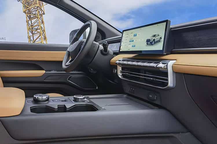 内饰方面,威麟R08 EV采用了偏向乘用车的设计,中控台及门把手区域采用了大量软质包覆,触感比较舒适。车内采用三辐式多功能方向盘搭配15.6英寸和12.3英寸悬浮式中控屏可选,让其有着不错的科技感。