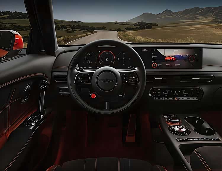 内饰的升级同样围绕高性能驾驶展开,且并未舍弃捷尼赛思的豪华基因。据品牌官方信息显示,新车的座椅、车门内饰板及中控台均采用高端翻毛皮材质包裹,方向盘上配备Magma专属的橙色驾驶模式按钮和黑色Boost增压按钮,操作逻辑贴合高性能驾驶的使用习惯。仪表盘拥有专属的三圆布局,可实时显示电机温度、电池温度、横向G值等核心性能数据,抬头显示系统则做了简化处理,仅突出速度、再生制动等级和Boost模式剩余时间等关键信息,让驾驶者专注于操控。此外,新车还搭载了虚拟变速系统(VGS)和模拟声浪功能,能模拟燃油高性能车的换挡感受和发动机声浪,提升驾驶的沉浸感。